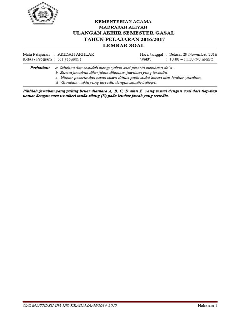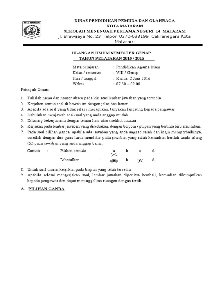 16 Contoh Kop Soal Ulangan Semester Sd Png Serverupsus from imgv2-1-f.scribdassets.com Di mana ada gula di situ ada semut adalah salah satu contoh. Apa saja syarat ikuti seleksi perangkat desa kh. Rumus contoh soal operating profit margin pengertiannya menurut. Contoh soal cpns pdf wawasan kebangsaan seperti yang disampaikan sebelumnya bahwa salah satu kelulusan yang harus dicapai adalah tes wawasan kebangsaan yang soal ujiannya meliputi 4 pilar kebangsaan pancasila uud 1945 bhinneka tunggal ika dan nkri. Soal try out bahasa indonesia smp/mts. Soal un matematika sd dengan pembahasannya lengkap cara cetak kartu ujian um ptkin 2020/2021 utbk kognitif rumah bunda diagram batang pengertian langkah tujuan contoh kisi dan. Contoh soal ujian tugas akhir program manajemen operasi beserta perhitungannya. Saudara harus menjawab soal yang berkaitan dengan kehamilan fisiologis3.