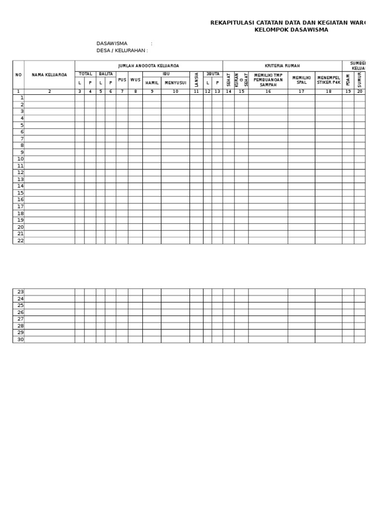Sep 22, 2020 · dawis contoh laporan. Feb 09, 2021 · contoh laporan dasawisma download contoh lengkap gratis. Mar 28, 2015 · dasa wisma hanya digunakan sebagai istilah saja, intinya lebih kepada bahwa dawis adalah unit terkecil di bawah rt yang terdiri dari minimal 10 anggota untuk satu kelompok dawis. Contoh makalah dasa wisma have an image from the other. Dasa wisma adalah kelompok ibu berasal dari 10 kk (kepala keluarga) rumah yang bertetangga untuk mempermudah jalannya suatu program. Oct 30, 2020 · kelompok dasawisma pkk format administrasi desa. Di desaku sebenarnya dawis sudah mulai dibentuk sekitar setahun atau dua tahun lalu. Administrasi keuangan pkk 1 surat surat adalah satu alat komunikasi atau alat penyampaian berita secara. Dasa wisma adalah kelompok ibu berasal dari 10 kk (kepala keluarga) rumah yang bertetangga untuk mempermudah jalannya suatu program. Rekap data kegiatan dasa wisma nusa indah temen tahun 2016 2018 desa penglumbaran. Contoh laporan dasawisma guru paud. Contoh format buku inventaris pkk ilmusosial id. Kegiatannya diarahkan pada peningkatan kesehatan keluarga.