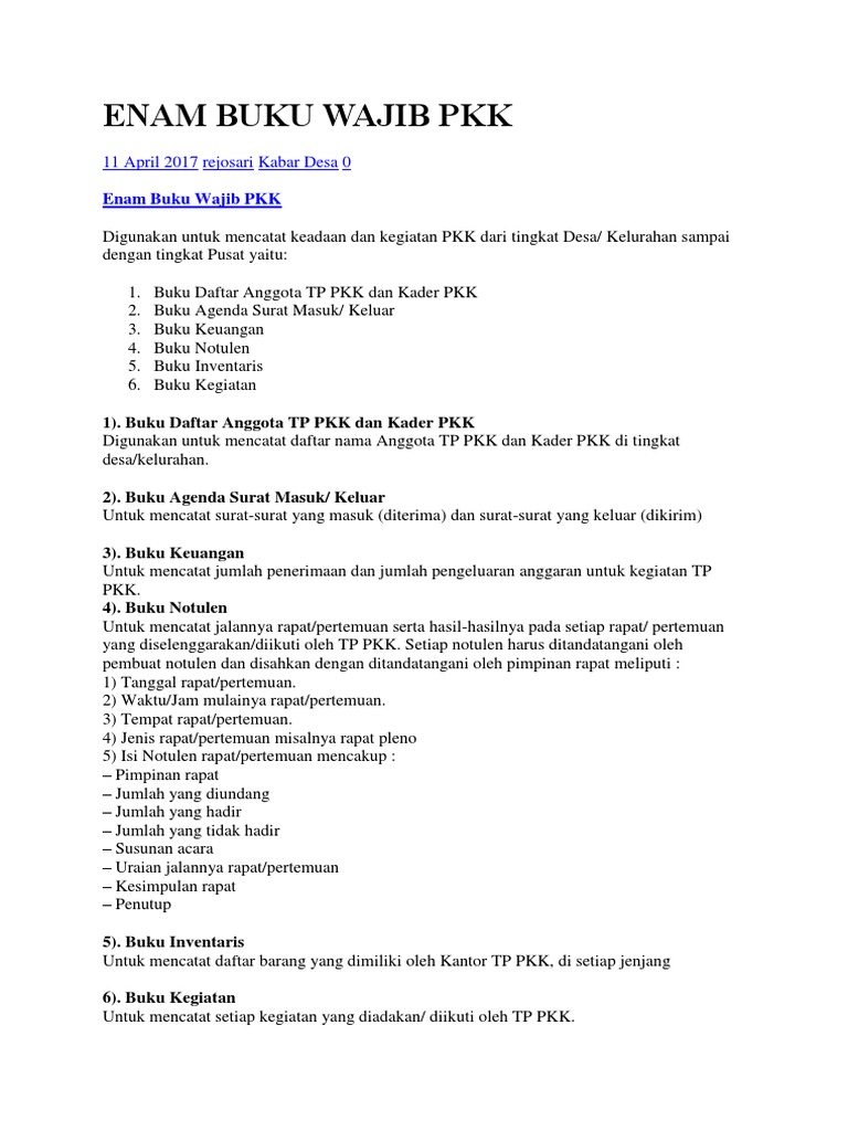 Pengumpulan dana kuesioner tertib administrasi adalah beberapa contoh tanggungjawab ketua dawis untuk kemudian hasilnya diteruskan ke ketua pkk. Contoh laporan dasawisma guru paud. Contoh makalah dasa wisma it also will feature a picture of a sort that may be seen in the gallery of contoh makalah dasa wisma. More images for dawis contoh buku buku administrasi dasa wisma » Administrasi keuangan pkk 1 surat surat adalah satu alat komunikasi atau alat penyampaian berita secara. Kegiatannya diarahkan pada peningkatan kesehatan keluarga. Ppt dasawisma id uncu academia edu. Rekap data kegiatan dasa wisma nusa indah temen tahun 2016 2018 desa penglumbaran. Dasa wisma adalah kelompok ibu berasal dari 10 kk (kepala keluarga) rumah yang bertetangga untuk mempermudah jalannya suatu program. Contoh makalah dasa wisma have an image from the other. Mar 28, 2015 · dasa wisma hanya digunakan sebagai istilah saja, intinya lebih kepada bahwa dawis adalah unit terkecil di bawah rt yang terdiri dari minimal 10 anggota untuk satu kelompok dawis. The collection that comprising chosen picture and the best among others. Feb 09, 2021 · contoh laporan dasawisma download contoh lengkap gratis.
